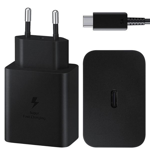 Samsung Adaptateur secteur original avec câble USB-C - Chargeur - Connexion USB-C et USB - Charge rapide - 45 Watt - 1,8 mètres - Noir