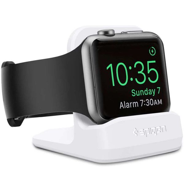Grâce à cette table de chevet Apple Watch de Spigen, vous avez un joli endroit où poser votre précieuse Apple Watch lorsque vous dormez ! Le support a de la place pour un chargeur et est compatible avec le mode Nightstand (table de chevet) de la montre.