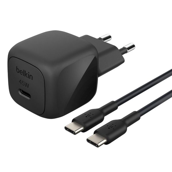 Belkin Chargeur USB-C compact BoostCharge 45W avec câble USB-C vers USB-C - 1 mètre - Noir