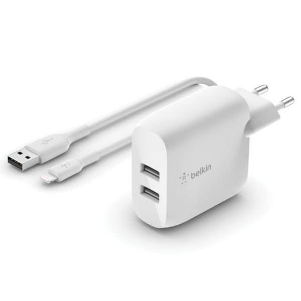 Ce Dual USB Wall Charger Boost↑Charge™ est le chargeur idéal pour la maison ! Le chargeur dispose de deux ports USB universels avec un rendement commun de 24 Watts afin que deux appareils puissent être rechargés rapidement en même temps. Le chargeur se recharge plus vite que les chargeurs traditionnels qui n'ont qu'un rendement de 5 Watts.