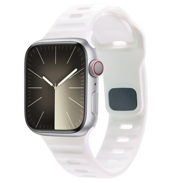 Le bracelet en silicone léger a des rainures subtiles à l'intérieur, permettant à ta peau de respirer pendant l'exercice. Ta peau peut donc continuer à transpirer, que tu sois en train de courir, de faire du vélo ou d'être à la salle de sport.