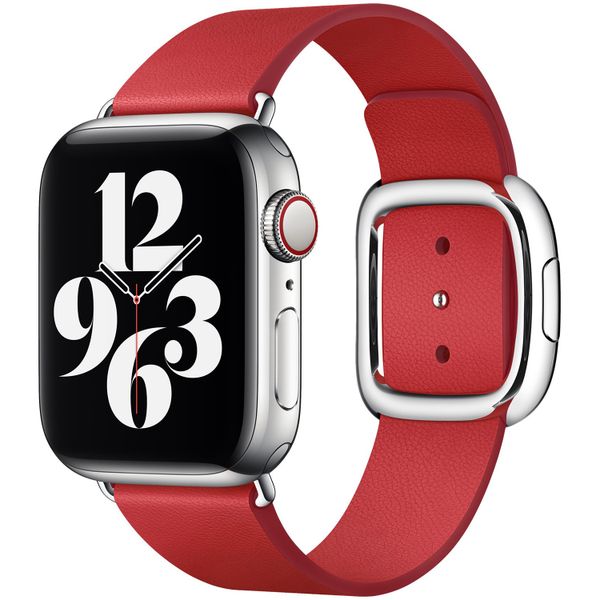 Apple Bracelet Leather Band Modern Buckle pour Apple Watch | 38/40/41/42 mm - Taille L - Scarlet Red