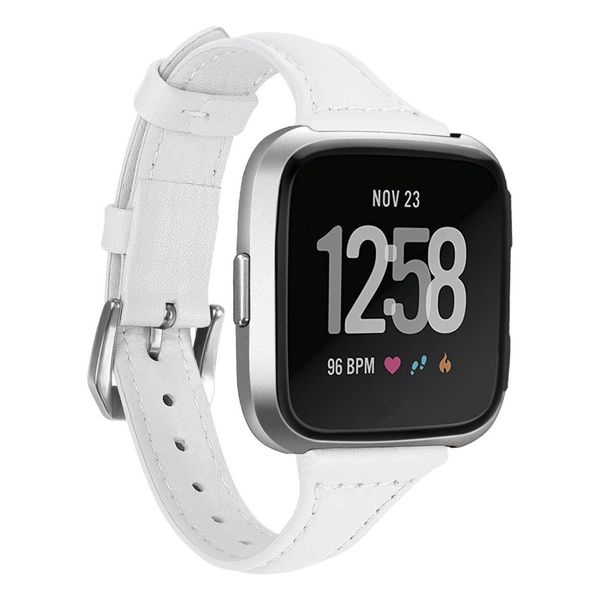 Fitbit Bracelet Leather pour Fitbit Versa / Versa 2 / Versa Lite - Taille L - Blanc