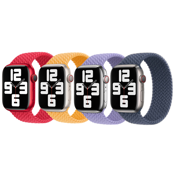 Apple 4 Pack Apple Bracelet Solo tressé Apple Watch| 38/40/41/42 mm - Taille 4 - (PRODUCT)RED / Maize / Lavender / Storm Blue