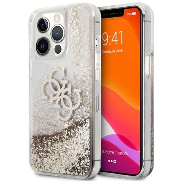 Guess Coque 4G Logo Liquid Glitter pour Apple iPhone 13 Pro - Doré