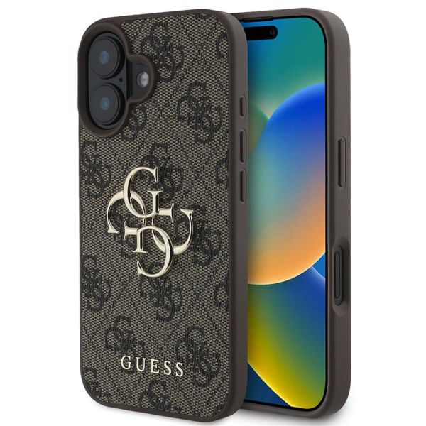 | Guess Coque arrière Bottom Stripe 4G Apple iPhone 16 - Marron Prix de vente conseillé 29,99 € 24,99 € | | | |