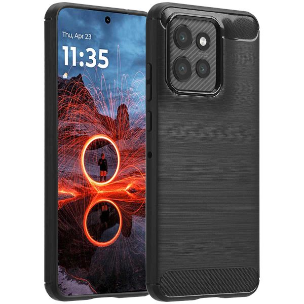 Le dos de la coque arrière est en silicone brossé, créant un effet brossé. En outre, la coque est recouvert de carbone. L'association de ces matériaux assure un aspect élégant de votre smartphone. Grâce à la conception légère et fine, votre téléphone conserve sa forme. Ainsi, la prise en main de votre smartphone reste confortable.