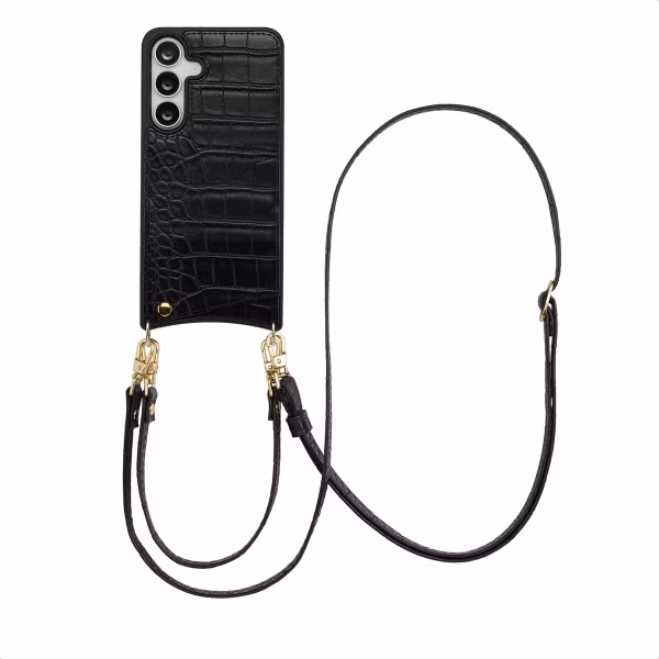 Selencia Coque de télephone Nova Croco avec cordon et porte-cartes pour Samsung Galaxy S25 FE - Noir