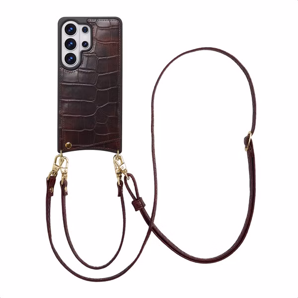 Selencia Coque de télephone Nova Croco avec cordon et porte-cartes pour Samsung Galaxy S26 Ultra - Choco Brown