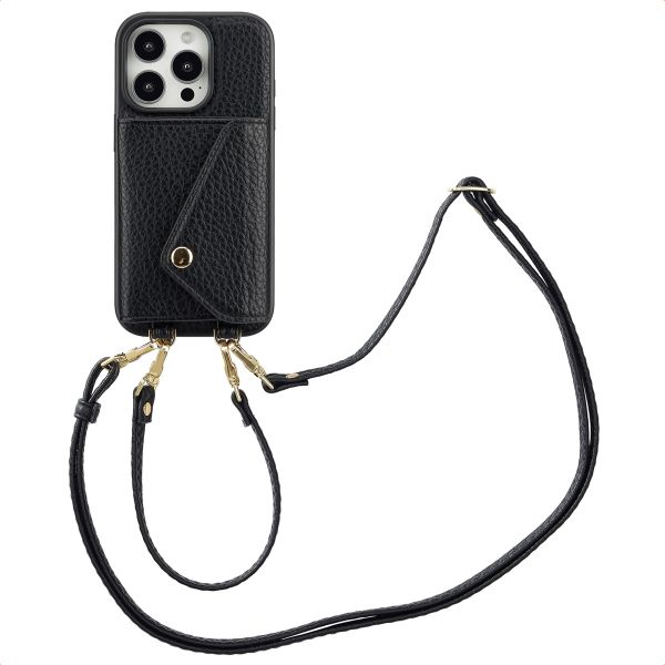 Selencia Coque de télephone Sera avec cordon et porte-cartes enveloppe pour Apple iPhone 16 Pro - Noir