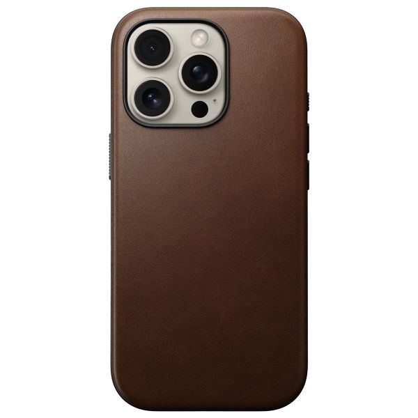 La coque Nomad Modern Leather Case avec MagSafe combine un élégant cuir Horween® avec une protection fiable. Le pare-chocs 360° en TPE absorbe les chocs et les bords surélevés protègent ta caméra et ton écran. Grâce aux aimants MagSafe intégrés, tu bénéficies d'un chargement et d'une utilisation d'accessoires sans effort, tandis que le cuir développe une patine unique qui t'appartient vraiment.