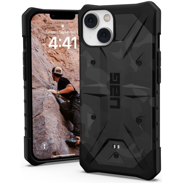 La coque arrière Pathfinder d'UAG est faite de silicone souple et flexible à l'intérieur et a une couche dure à l'extérieur. Les coins renforcés absorbent les chutes et les coups. Les côtés ont de petits bords de préhension, de sorte que le téléphone ne glisse pas facilement de votre main. La coque arrière est conforme aux normes militaires de test de chute MIL-STD-810G.