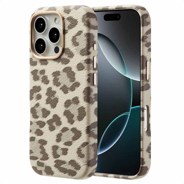 Cette coque arrière est fabriquée en cuir synthétique (PU) de haute qualité, réputé pour sa durabilité et sa résistance à la décoloration. Il est également facile à nettoyer. L'imprimé léopard vibrant reste beau longtemps et fait ressortir ton appareil. Les détails en aluminium, comme le contour de la caméra et les boutons, assurent non seulement une durabilité supplémentaire, mais créent également une apparence luxueuse parfaitement assortie.