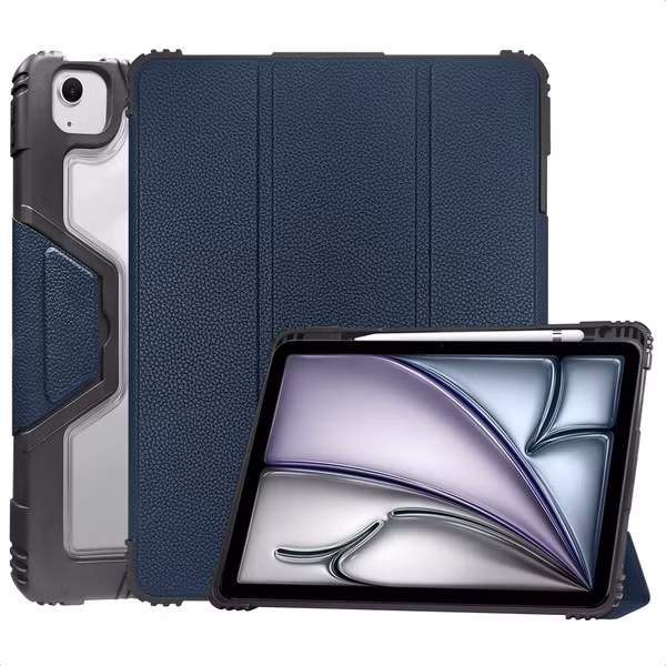 Accezz Coque tablette Rugged Trifold pour Apple iPad Air 11 pouces (2025) M3 / (2024) M2 / Air 5 (2022) / Air 4 (2020) - Bleu foncé