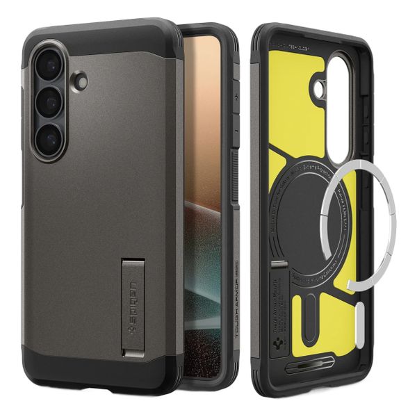 Offrez à votre téléphone une double dose de protection avec cette coque Spigen Tough Armor. La housse dispose d'une base en silicone doux et d'un blindage en polycarbonate puissant. Ensemble, cela assure la protection idéale contre les dommages causés par les chutes et les chocs. Ainsi, la housse satisfait même aux normes de test de chute militaires! Cette coque Tough Armor n'est qu'une fraction de son prédécesseur, la coque Slim Armor. La coque dispose d'un support amovible afin que vous puissiez regarder des films ou des séries sur votre smartphone de manière très confortable. Le caoutchouc intérieur est conçu de manière à garder la plaque arrière brillante et l'écran exempts de rayures lorsque vous posez votre appareil à plat. Du fait des évidements pour les boutons, ports et la caméra, vous utilisez votre téléphone comme à l'accoutumée. Grâce à la fonction intégrée MagSafe, vous pouvez facilement recharger votre smartphone sans fil.