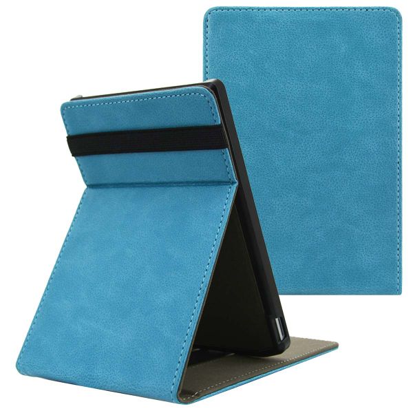 Cet étui à rabat de imoshion est fabriqué en cuir artificiel de haute qualité, possède un support en plastique solide et peut être fermé à l'aide de l'élastique. L'étui peut être utilisé comme support pour créer l'angle de vue idéal et dispose d'une poignée intégrée pour une meilleure prise en main pendant la lecture.