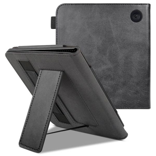 Cette housse pratique est équipée à la fois d'un support et d'une sangle. Utilise le support pour lire ton livre préféré les mains libres. Crée l'angle de vue idéal et profite d'un peu plus de confort. Ou utilise la sangle, pour tenir ta liseuse encore plus fermement.