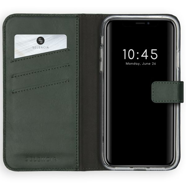 Cet étui de téléphone à rabat en cuir véritable Selencia respire le style et la classe pour votre smartphone. Le cuir véritable est doux et offre également une protection contre les dommages quotidiens. L'étui peut contenir trois cartes et billets ; vous n'avez donc plus besoin d'emporter un portefeuille avec vous.