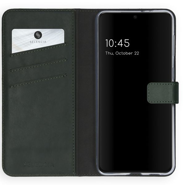 Cet étui de téléphone à rabat en cuir véritable Selencia respire le style et la classe pour votre smartphone. Le cuir véritable est doux et offre également une protection contre les dommages quotidiens. L'étui peut contenir trois cartes et billets ; vous n'avez donc plus besoin d'emporter un portefeuille avec vous.