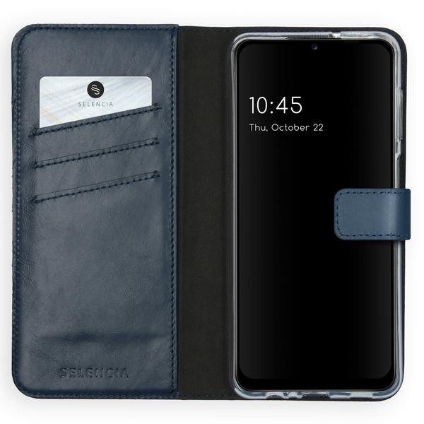 Cet étui de téléphone à rabat en cuir véritable Selencia respire le style et la classe pour votre smartphone. Le cuir véritable est doux et offre également une protection contre les dommages quotidiens. L'étui peut contenir trois cartes et billets ; vous n'avez donc plus besoin d'emporter un portefeuille avec vous.