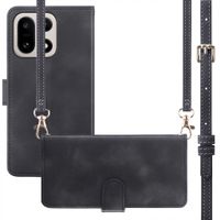 Vous souhaitez combiner style et fonctionnalité ? Alors, optez pour la Housse portefeuille avec cordon d'imoshion ! La housse est en similicuir, ce qui lui donne un aspect élégant. En outre, la housse offre une protection intégrale à votre téléphone. La housse est fournie avec un cordon réglable pratique. Vous pouvez également détacher une partie du cordon pour l'utiliser comme dragonne. Avec le long cordon, vous pouvez porter votre téléphone en bandoulière ou au poignet avec le cordon plus court. Ainsi, vous avez toujours votre téléphone à portée de main tout en gardant les mains libres. Vous ne voulez pas utiliser le cordon ? Il se détache facilement grâce aux crochets. La housse peut contenir 3 cartes et des billets, ce qui vous permet d'accéder rapidement et facilement à vos cartes les plus importantes. De plus, la housse se plie facilement pour former un support, ce qui est très pratique pour les longues conversations ou pour regarder des vidéos ou des recettes.