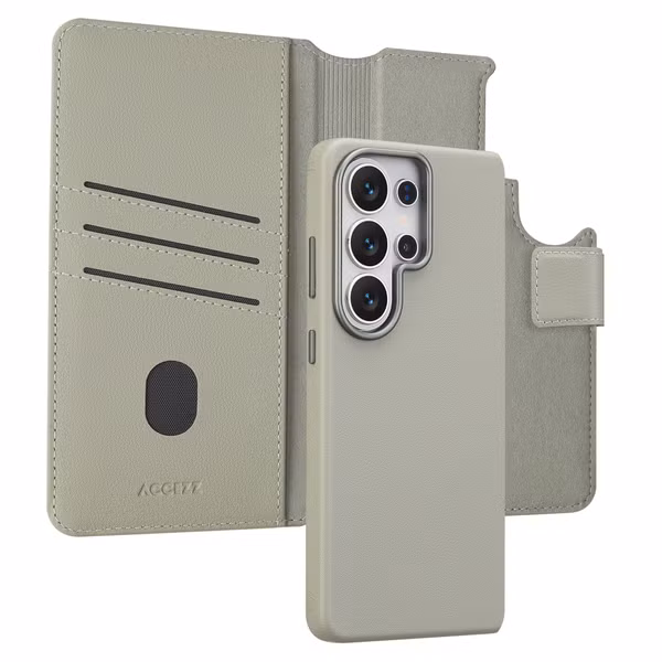 Accezz Étui de télephone portefeuille en cuir 2-en-1 avec MagSafe pour Samsung Galaxy S26 Ultra - Light Grey