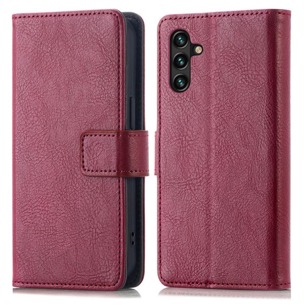 L'étui est fabriqué en simili cuir et il est disponible en plusieurs couleurs. Vous optez pour une version noire neutre ou vous préférez un étui plutôt bleu, vert ou gris ? La fermeture magnétique a une forme moderne et minimaliste. La couture de l'étui est assortie à la couleur de la coque. Le matériau n'est pas inutilement épais, ce qui fait que, pour ce type de produit, l'étui portefeuille à rabat ajoute relativement peu de volume à votre téléphone. Idéal lorsque vous portez souvent votre étui dans vos vêtements.