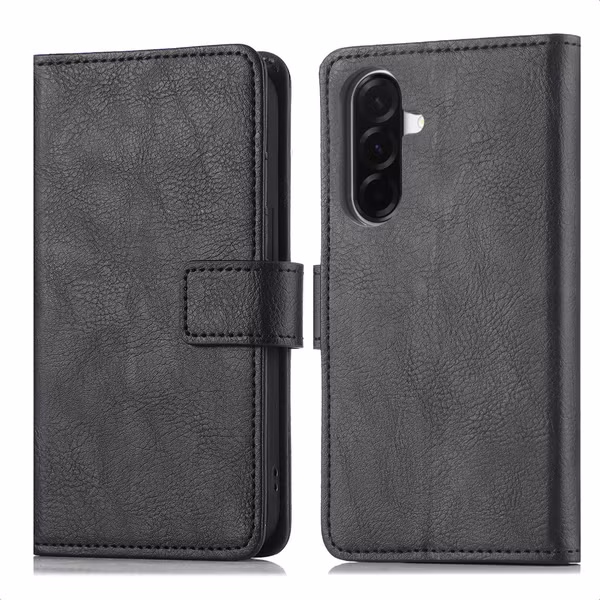 L'étui est fabriqué en simili cuir et il est disponible en plusieurs couleurs. Vous optez pour une version noire neutre ou vous préférez un étui plutôt bleu, vert ou gris ? La fermeture magnétique a une forme moderne et minimaliste. La couture de l'étui est assortie à la couleur de la coque. Le matériau n'est pas inutilement épais, ce qui fait que, pour ce type de produit, l'étui portefeuille à rabat ajoute relativement peu de volume à votre téléphone. Idéal lorsque vous portez souvent votre étui dans vos vêtements.