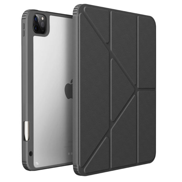 L'étui minimaliste est doté d'un rabat de protection qui peut être plié comme un origami, ce qui lui permet également de fonctionner comme support réglable dans différentes positions.