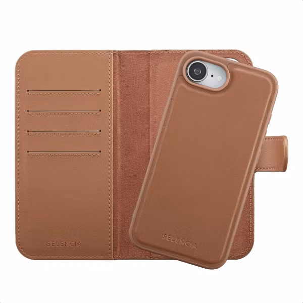 L'étui portefeuille amovible Selencia Olyn avec MagSafe combine style, fonctionnalité et flexibilité. Le portefeuille en similicuir dispose de six porte-cartes et d'un espace pour les billets, et la coque arrière MagSafe amovible peut également être utilisée seule. Une finition douce et cousue, un intérieur soyeux et une fermeture magnétique assurent une protection durable de ton téléphone.