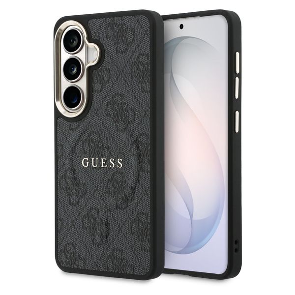 Guess Coque arrière en cuir 4G avec MagSafe pour Samsung Galaxy S26 - Gold Edge - Black