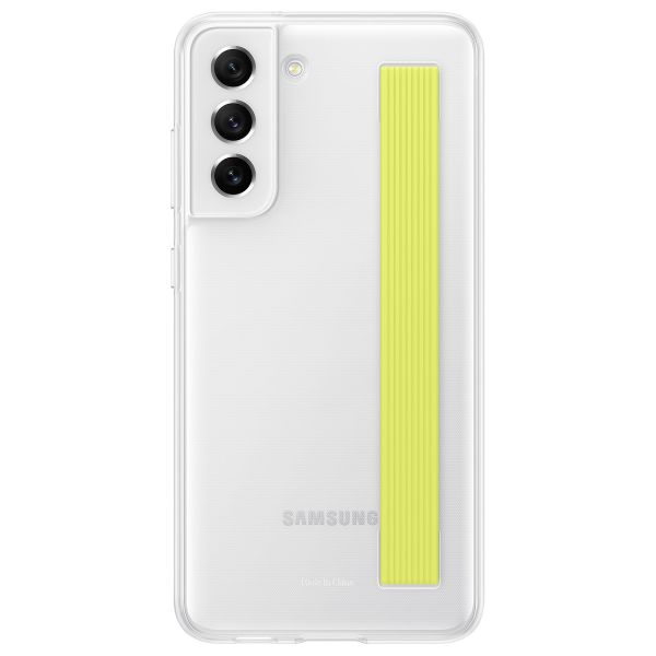 Donnez à votre smartphone une meilleure prise en main avec la coque Slim Strap de Samsung. Cette coque Samsung originale est fabriquée en silicone souple et comporte une bande de couleur. Cette bande vous permet d'avoir une meilleure prise en main de l'appareil. De plus, la coque comporte des découpes pour les ports et les boutons. Vous avez ainsi un accès complet au smartphone, ce qui vous permet de laisser la coque sur l'appareil. De plus, la coque est transparente, de sorte que la couleur de l'appareil reste visible.