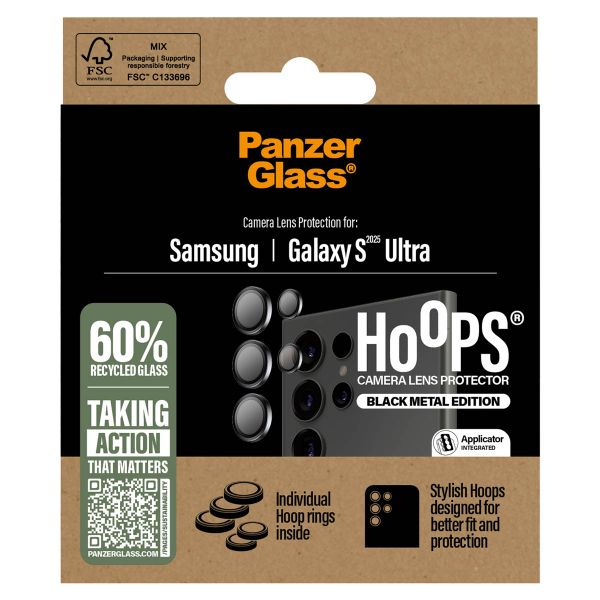 Le protecteur d'objectif d'appareil photo Hoop Optic Rings de PanzerGlass évite d'endommager l'appareil photo de votre téléphone. Le protecteur est en verre et possède un cadre en aluminium, offrant à votre appareil photo une protection optimale contre les chutes et les chocs.