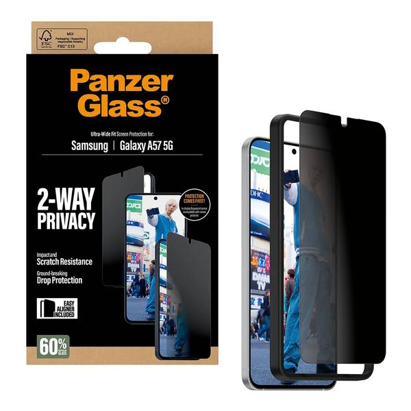 PanzerGlass Protection d'écran Privacy Ultra-Wide Fit Anti-bactérienne avec applicateur pour Samsung Galaxy A57 (5G)
