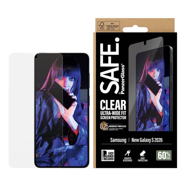 La protection d'écran SAFE Ultra-Wide Fit garantit que l'écran de votre smartphone ne sera pas endommagé. Le verre de protection est fabriqué en verre trempé résistant, de sorte que la surface est identique à celle du smartphone lui-même. La protection d'écran couvre la totalité de l'avant de votre appareil.