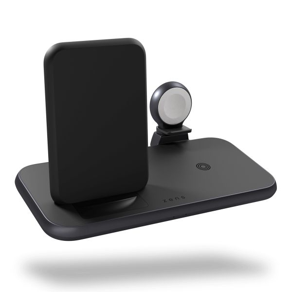 Zens Station de charge sans fil 4-en-1 - Serie Aluminium - Support de chargement sans fil + Apple Watch - Noir