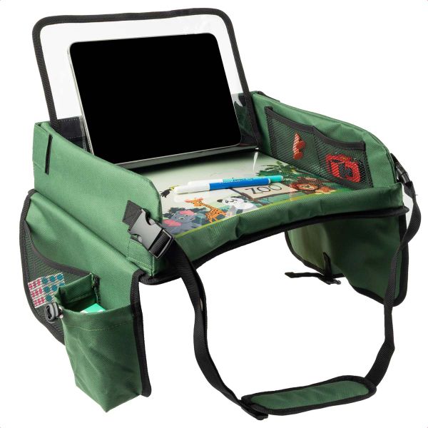 imoshion Table de voyage - Support de tablette voiture - 7 compartiments de rangement - Inclus 2 coloriages - Vert