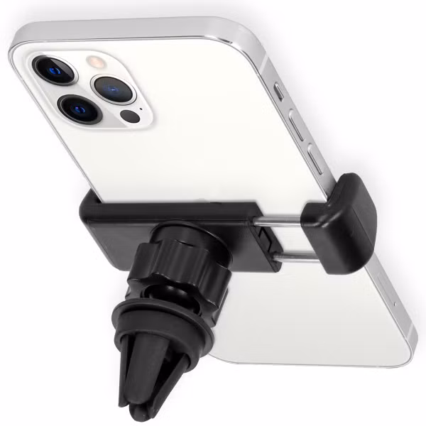 Le support se fixe sur la grille d'aération d'une voiture.